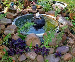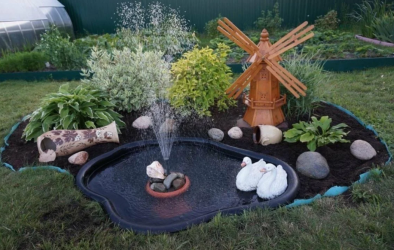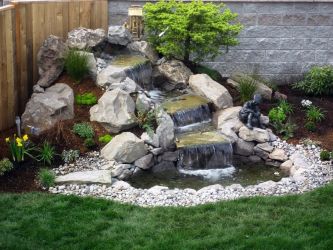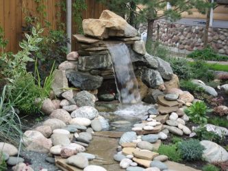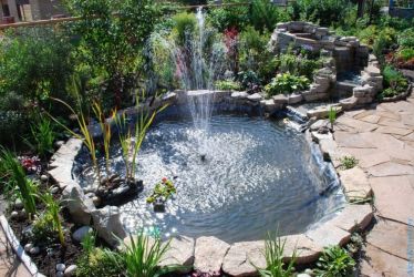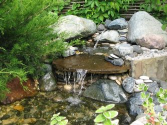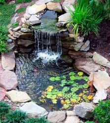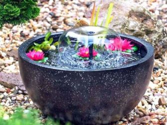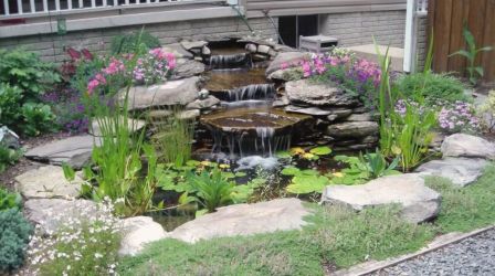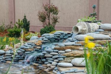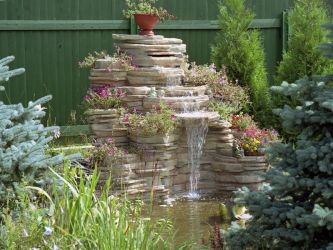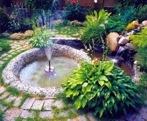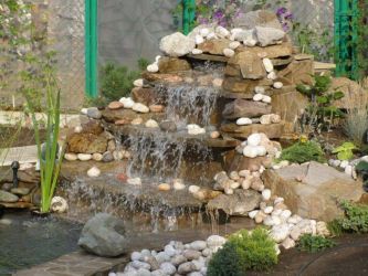 Несмотря на то, что производители предлагают типовые модели фонтанов и домашних водопадов, при их монтаже все равно можно проявить изрядную долю креатива, заключающуюся в декорировании пространства вокруг него (элементы декорирования и украшения сада подробно описаны в статье на нашем сайте).