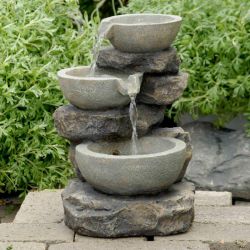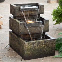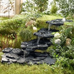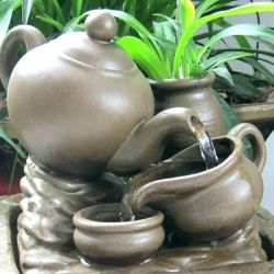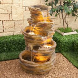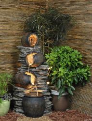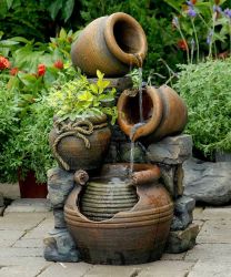 И еще один вариант водопада или фонтана с насосом, который может быть использован в качестве малого элемента ландшафтного дизайна. Обойдется он дороже предыдущего, но и вид у него будет богаче. Он прекрасно впишется в средиземноморский стиль.